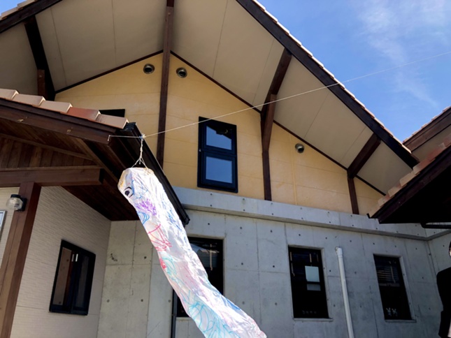 まずここを訪れて私たちを出迎えてくれたもの。それは青い空に泳ぐ鯉のぼりでした。