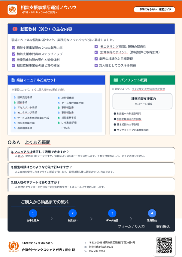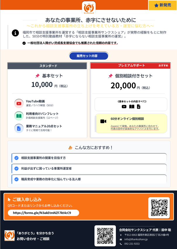 R8.1.9、一般社団法人障がい児成長支援協会が主催した経営者交流会(福岡)にて情報提供させていただいた「赤字にならない相談支援事業所の運営」(サンクスシェア)の動画及び関連資料の販売をご案内します。(制作:サンクスシェア田中聡)