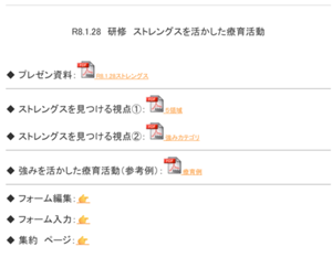 研修の終盤の療育活動をつくる部分については、この日の研修での作成だけにとどまらず、今後も支援者のみなさんがアイディアづくりを継続していくことができるようGoogleフォームをつくって活用できるよう下準備した。