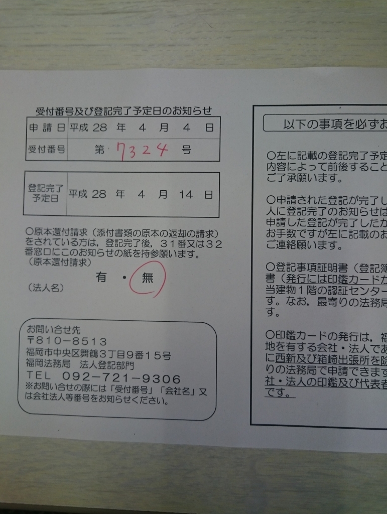 不備がなければ、4月14日に登記完了とのこと。無事にチェックを通ることを祈るばかりです。